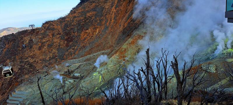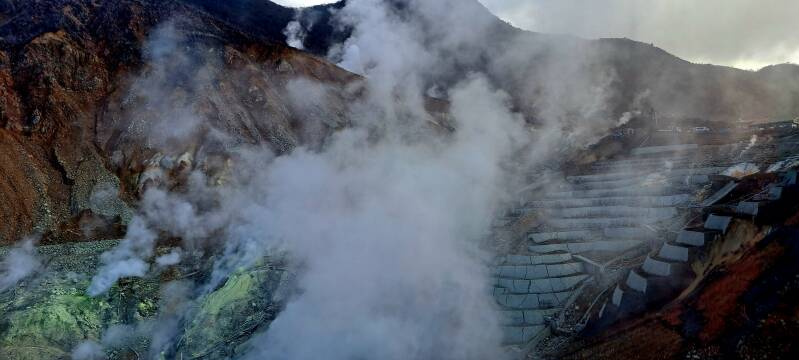 Région qui entoure un cratère formé lors de la dernière éruption du mont Hakone, il y a environ 3 000 ans. Aujourd'hui, une grande partie de la zone est une zone volcanique active où l'on peut ressentir des émanations sulfureuses, profiter de sources thermales et de rivières chaudes. De plus, par temps clair, Owakudani offre de superbes vues sur le mont Fuji.