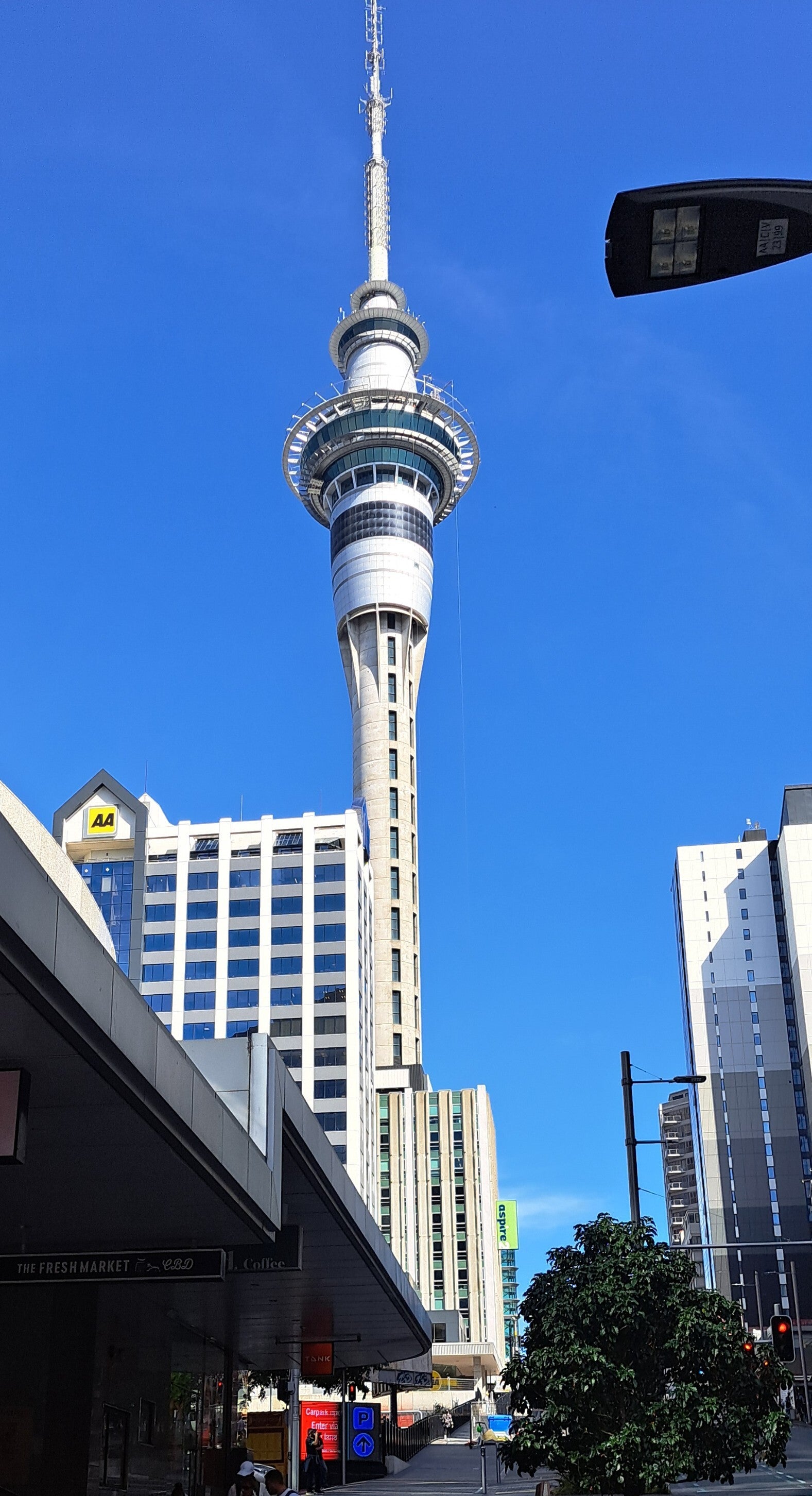 En arrivant à Auckland, c’est la Sky Tower qui nous donne un premier repère. Haute de 328 mètres, elle perce le ciel comme un mât planté au cœur du centre-ville.